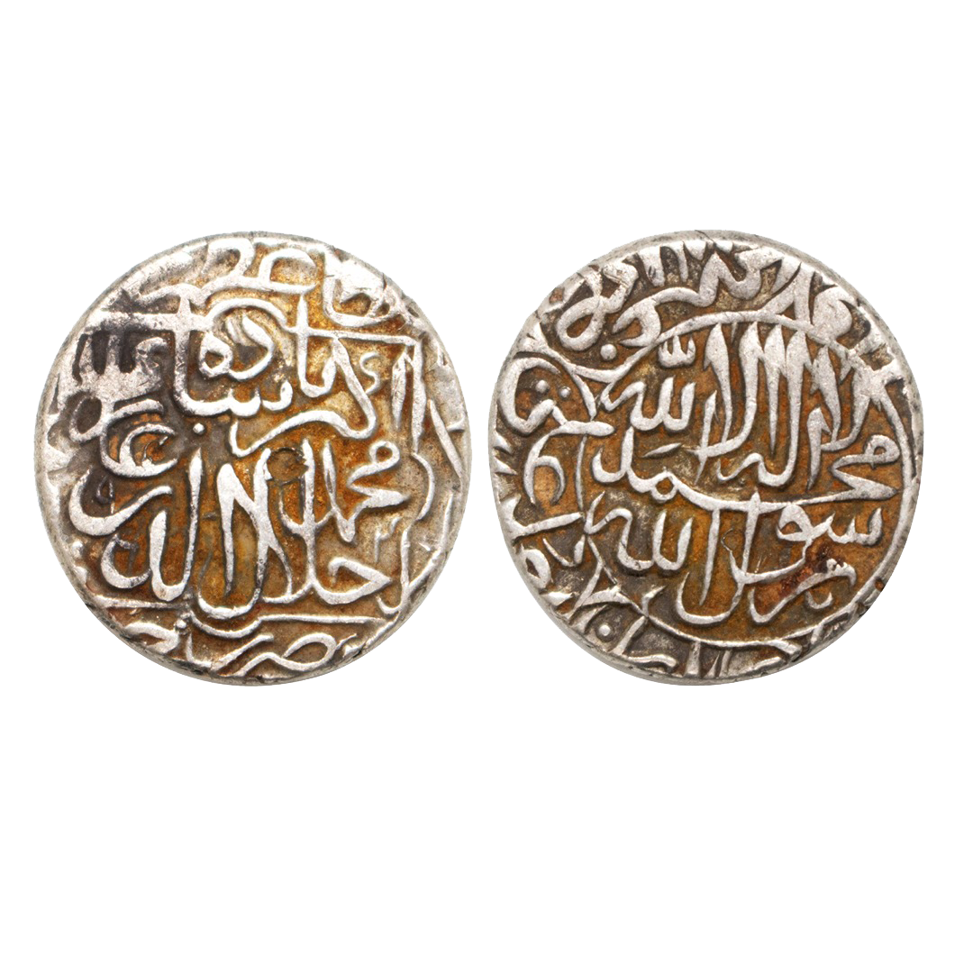 Akbar (AH 963-1014 / 1556-1605 AD), Silver Rupee 11.33g, Allahabad Mint, Year 44, Rebellion Issue of Prince Salim, poetic Couplet read as ?Hamasha hamchu zar mihr wa mah raij bad / baghrub wa sharq jahan sikka Allahabad?. (KM # 97.1). extremely fine