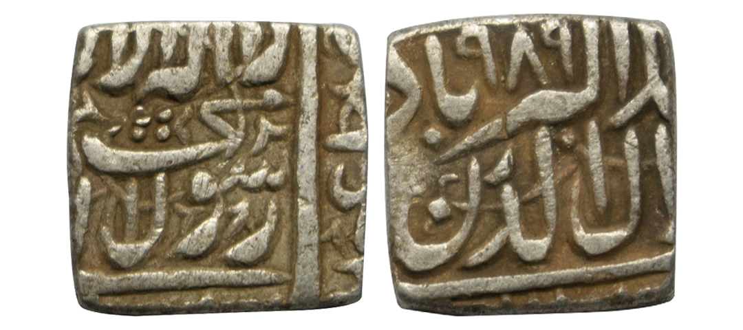 Akbar (AH 963-1014), Silver Mahmudi, 5.62grms, Mulher Mint, Ah 1026, Kalima on obv. (KM # 72.1). very fine