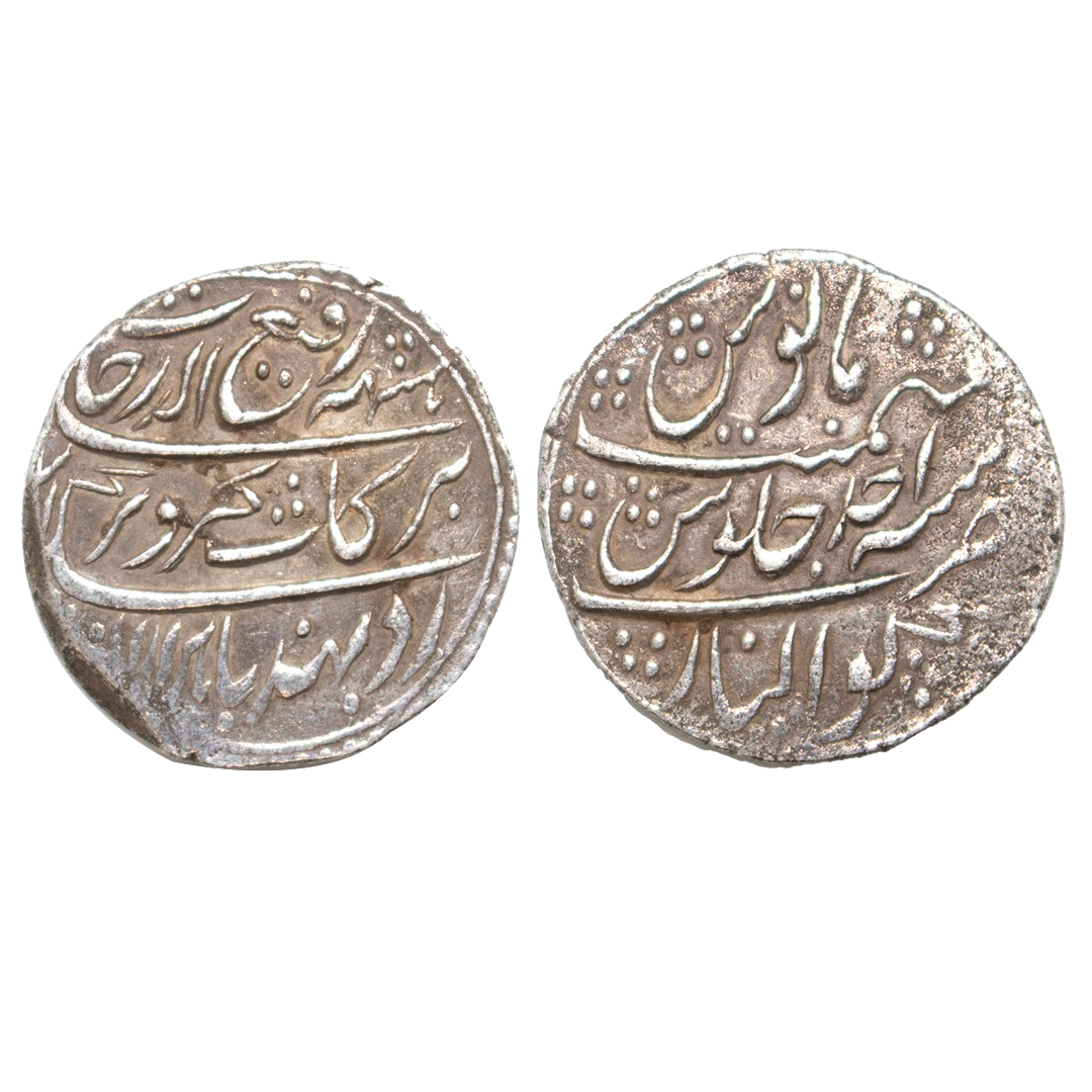 Rafi-du-Darjat (AH 1131 / 1719 AD), Silver Rupee, 11.29grms, Dar-ul-Khilafat Shahjahanabad Mint, AH 1131, RY Ahd, poetic Couplet Ba hazaraan barkaat on obv. (KM # 405.19). very fine