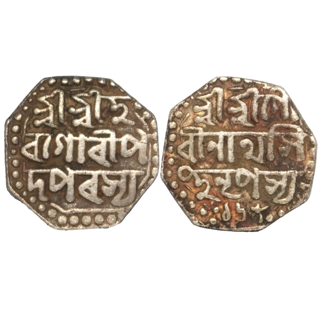 Assam, Lakshmi Simha (SE 1691-1702 / 1769-1780 AD), Silver 1/4 Rupee, 2.78grms, SE 1699, Assamese legends on both sides, OBV: Sri Sri La / xmi Simha / Nripasya, REV: Sake 1699. (A.Mitra # 312). extremely fine