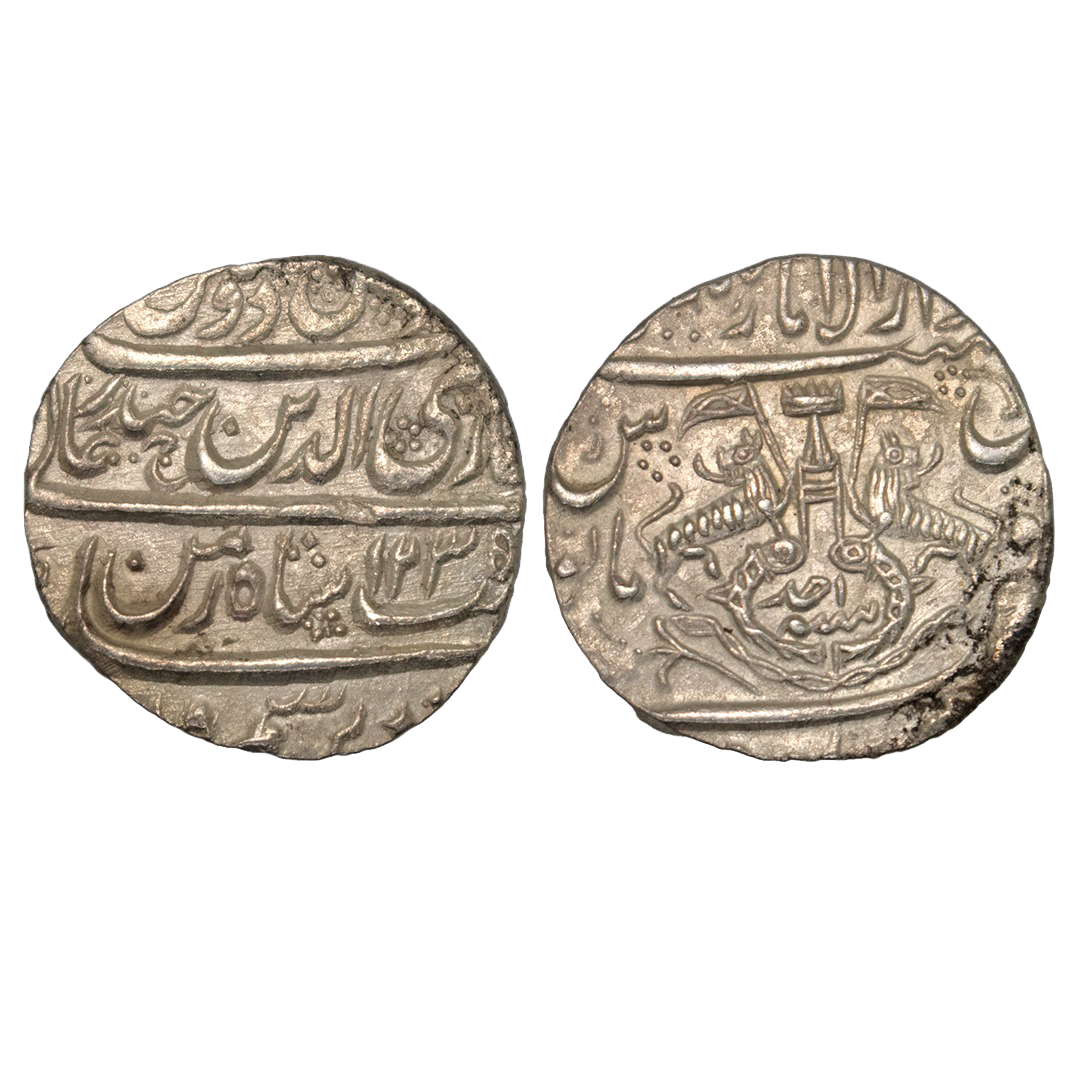 Princely States, Awadh, Wajid Ali Shah (AH 1263-1272 / 1847-1856 AD), Gold Ashrafi, 10.66grms, Mulk Awadh bait-s-sultanat Lakhnau Mint, AH 1264, RY 2, mint epithet type V, complete die impression on both sides within dotted border. (KM # 378.1). Extremely fine