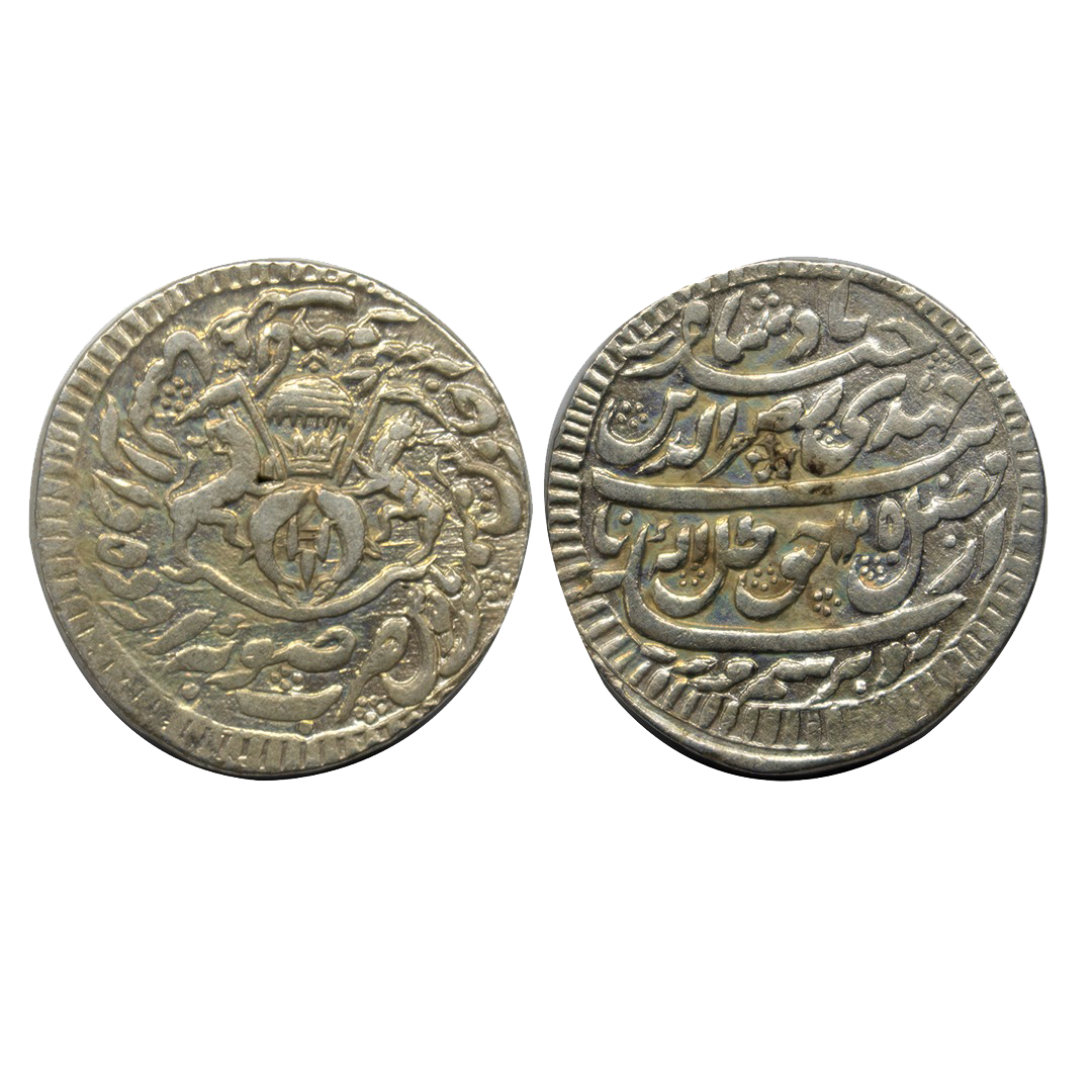 Princely States, Awadh, Saadat Ali Khan II, (AH 1212-1229 / 1798-1814 AD). Silver Rupee, 11.09grms, Muhammadabad Banaras Mint, AH 1221, fronzen RY 26, in the name of Shah Alam II, Fish and pataka on rev. (KM # 130.2).very fine