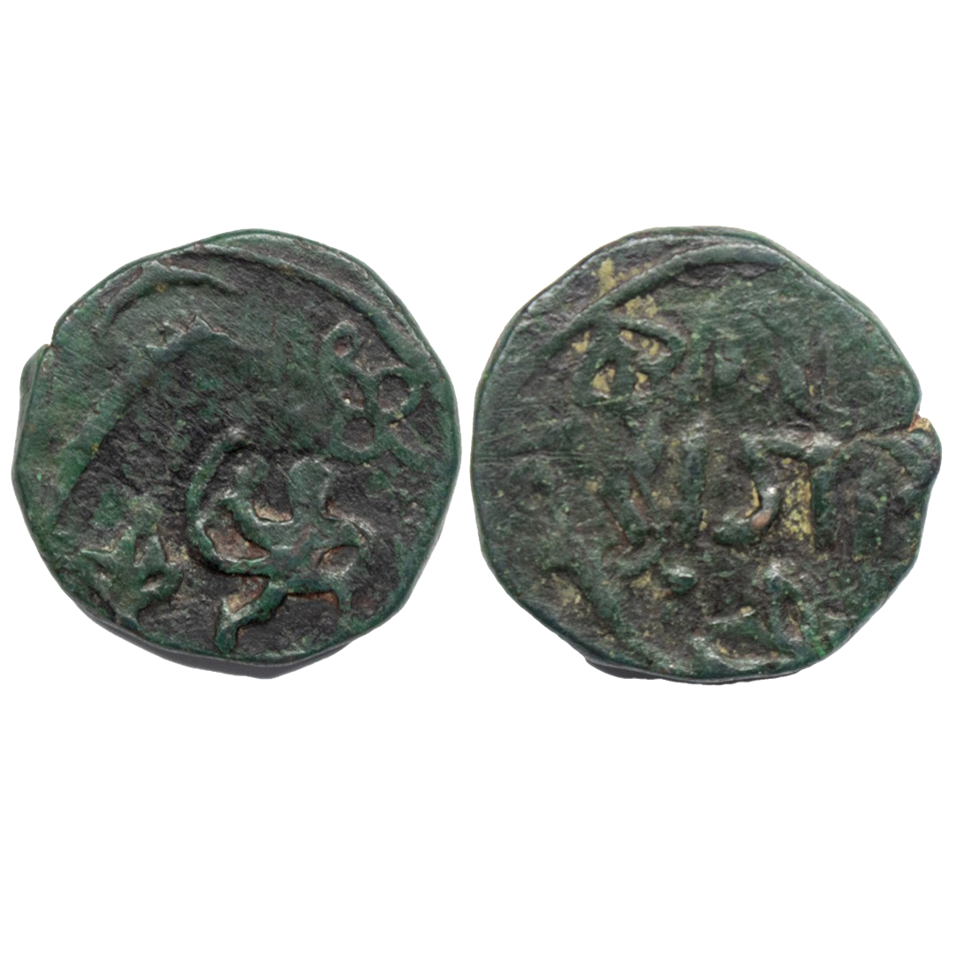 Princely States, Gwalior, Daulat Rao Sindia (AH 1209-1243 / 1794-1827 AD), Copper Paisa, 10grms, Rajod Mint, OBV: Hanuman running to right front of lingam, REV: Mint name and date. (KM # 194). very fine