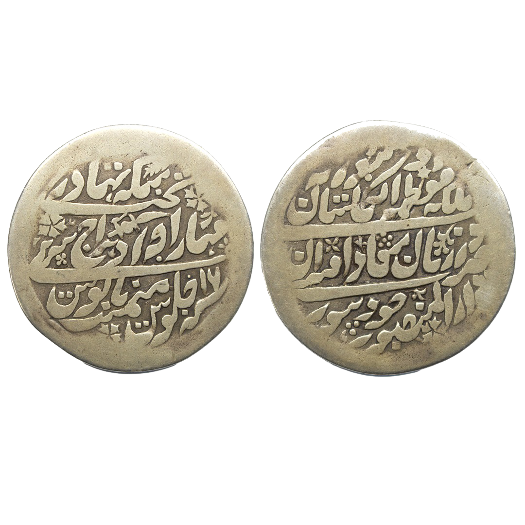 Princely States, Jaisalmir, Ranjit Singh (AH 1263-1281 / 1846-1864 AD), Silver Rupee, 10.52grms, in the name of Victoria, frozen RY 22, Gujarati numeric 17 on obv., Bird and Umbrella on rev. (KM # 34). very fine