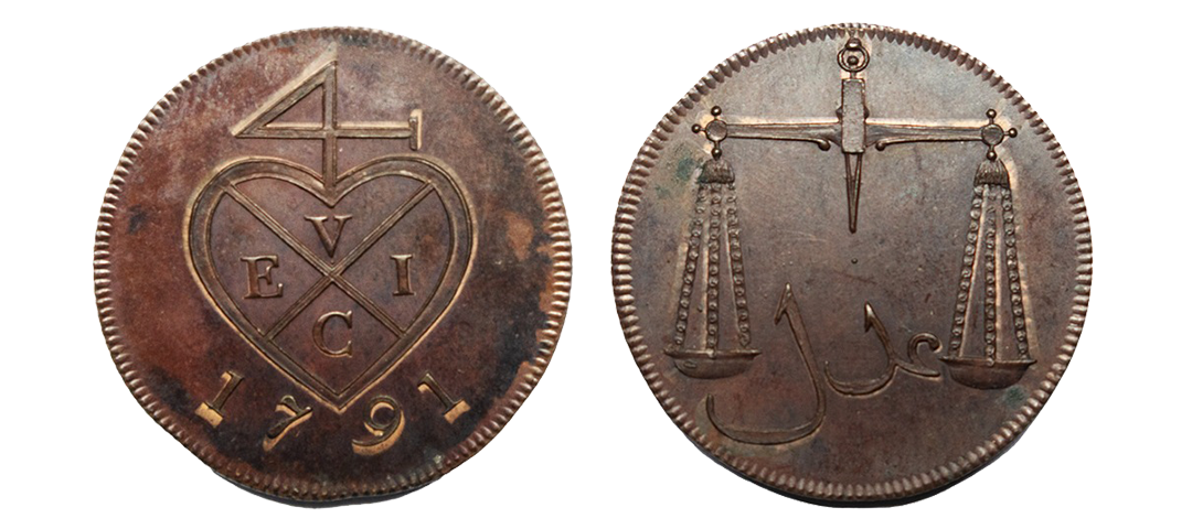 Bengal Presidency, Dar-ul-Khilafat Shahjahanabad mint, Silver Nazarana Rupee, 11.16grms, in the name of Shah Alam II, AH 1220, RY 48, legends within a wreath anti clockwise of shamrock and thistle, Sahib Qiran legend of the Mughals type. Issued immediately after Lord Lakes capture of Delhi. (Stevens # 8.32). Extremely fine