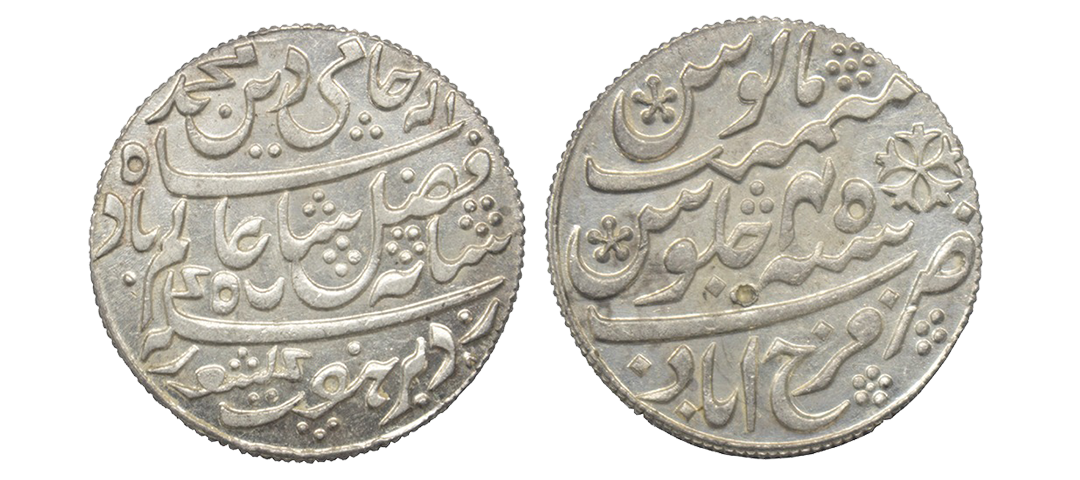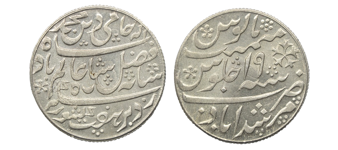 Madras Presidency, Gold 1/3rd (Five Rupees) Ashrafi, 3.87grms, (1819 AD Issue), OBV: Lion standing over shield, Coat of Arms of English East India Company, REV: Panj rupiya Kampani Angrez Bahadur. (Stevens # 4.7 uncirculated