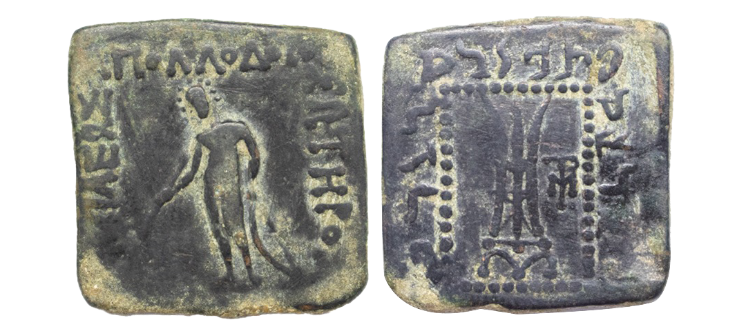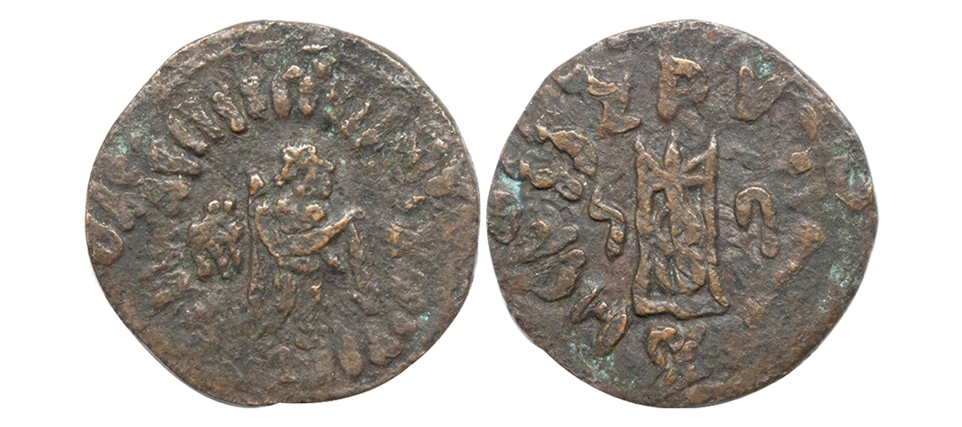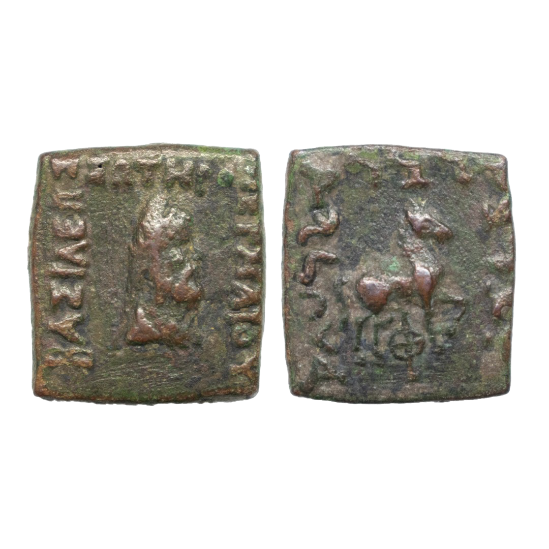 Indo-Greeks, Hermaeus / Hermaios (c. 40-1 BC), Copper Tetradrachm, 8.59Grms, OBV: Bearded bust of Zeus-Mithra facing to right side with Greek legend, REV: Horse prancing to right side below monogram and Kharoshthi legend. (Bopearachchi & Rahman # 528). Very Fine.