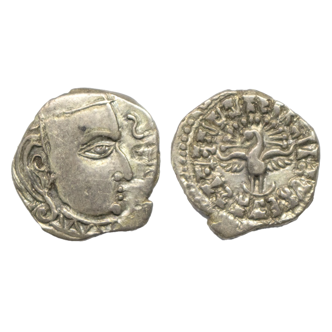 Guptas, Skandagupta (c. 455-480 AD), Fire Altar Type, Silver Drachma, 2.06Grms, OBV: Bust of king facing to right, REV: Fire altar in centre Brahmi legend [Paramabhagavata Sri Skandaguptah] Kramadityah around. (S. Kumar # Class II). Very Fine.