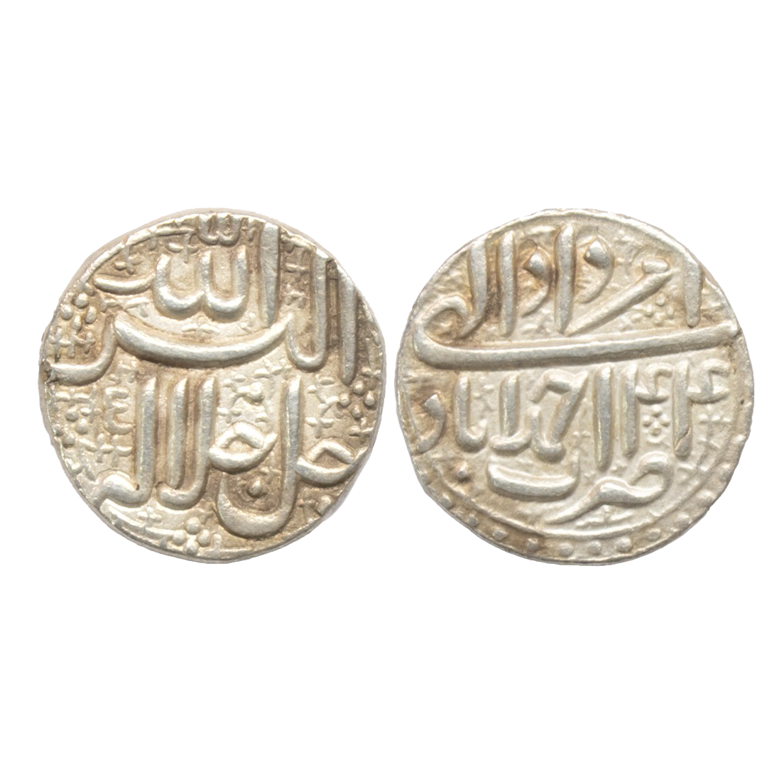 Mughals, Akbar (AH 963-1014 / 1556-1605 AD), Gold Mohur, 10.83Grms, Dar-ul-Khilafa Agra Mint, AH 977, Kalima within circle with four knots on obv. (KM # 108.1). Extremely Fine, Rare.
