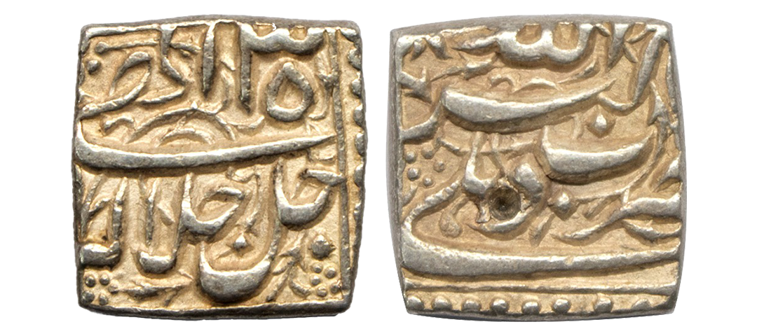 Mughals, Akbar (AH 963-1014 / 1556-1605 AD), Gold Mohur, 10.86Grms, Bang Mint (Bengal), AH 987, Kalima on obv with Jhar symbol as a mint mark. Unlisted in KM. Extremely Rare in this Grade, Complete dotted Border, Extremely Fine.