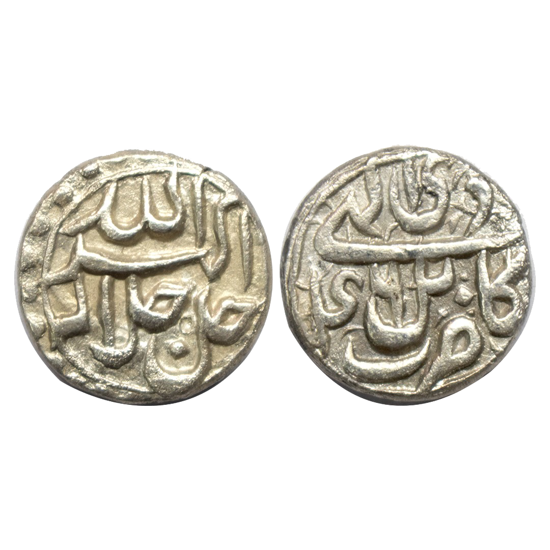 Akbar (1556-1605 AD), silver rupee, Dar ul-Khilafat Jaunpur mint, AH 969, Not listed KM, Very Big Flan. Very Fine+, Very Rare.