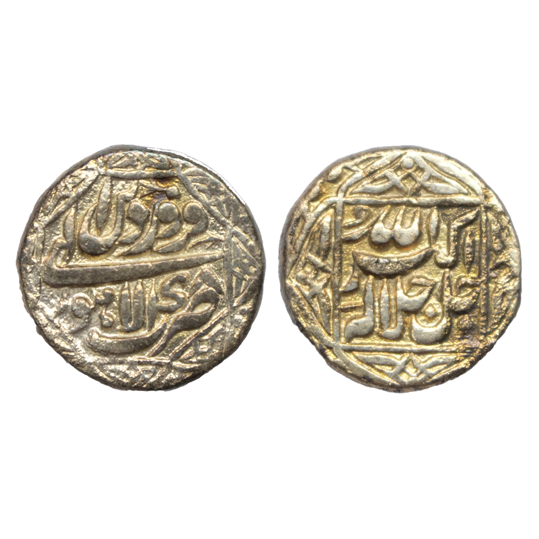 Mughals, Akbar (AH 963-1014 / 1556-1605 AD), Silver Rupee, 11.20Grms, Lahore Mint, Ilahi type, Month Mihr, Year 4X, (KM # 93.11). . About Extremely Fine, Very Scarce