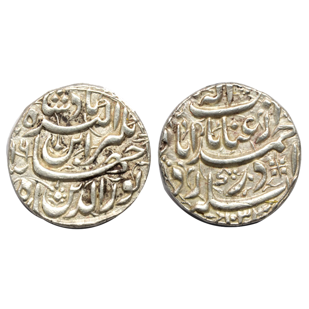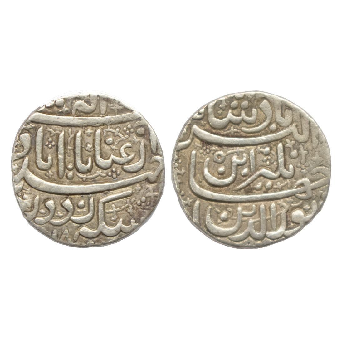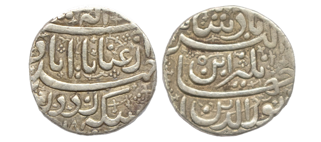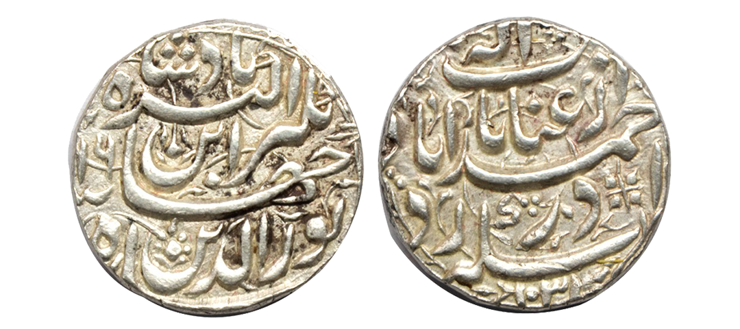 Rev: Persian legend “Noor ud din Jahangir Shah Akbar Shah”. With floral & beaded border design on both sides,