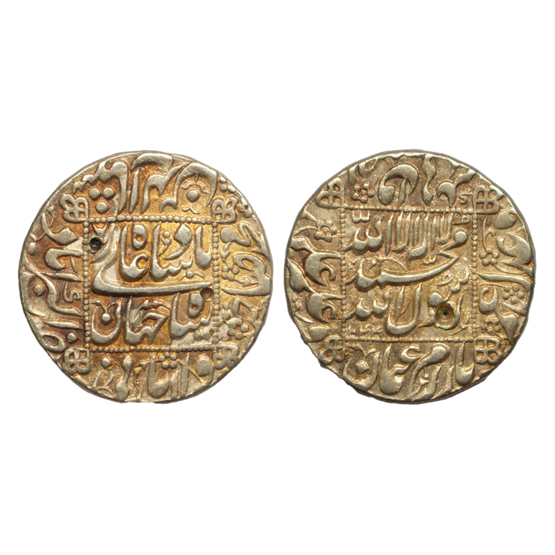 Shah Jahan (1628-1658 AD), silver rupee, Dar ul-Khilafat Akbarabad mint, AH 1068/RY 32, KM 232.4, 11.25g. About Extremely fine, Rare. Post Deposition Issue.Towards the end of Shah Jahan s reign, the octafoil in center type coin were struck from Shahjahanabad, Akbarabad and Daulatabad mints.
