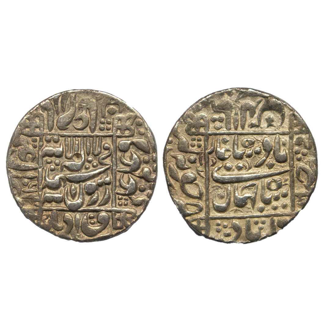 Mughals, Shah Jahan (AH 1037-1068 / 1628-1658 AD), Silver 1/2 Rupee, 5.66Grms, Gulkonda Mint, crude calligraphy on both sides. (KM # 214.1).