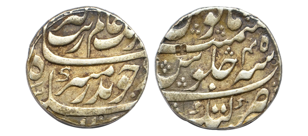 Mughals, Aurangzeb (AH 1068-1118 / 1658-1707 AD), Silver Rupee, 11.72grms, Multan Mint without Epithet, RY 45, badr-e-Munir couplet. (KM # 300.63). Very Fine+, Scarce.