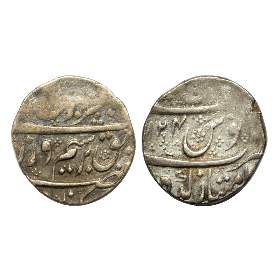 Mughals, Farrukhsiyar (AH 1124-1131 / 1713-1719 AD), Silver Rupee, 11.41Grms, Bahadurgarh Mint, AH 1125, RY 2, complete mint name on rev bottom area. (KM # 377.15). Extremely Fine, Extremely Rare.