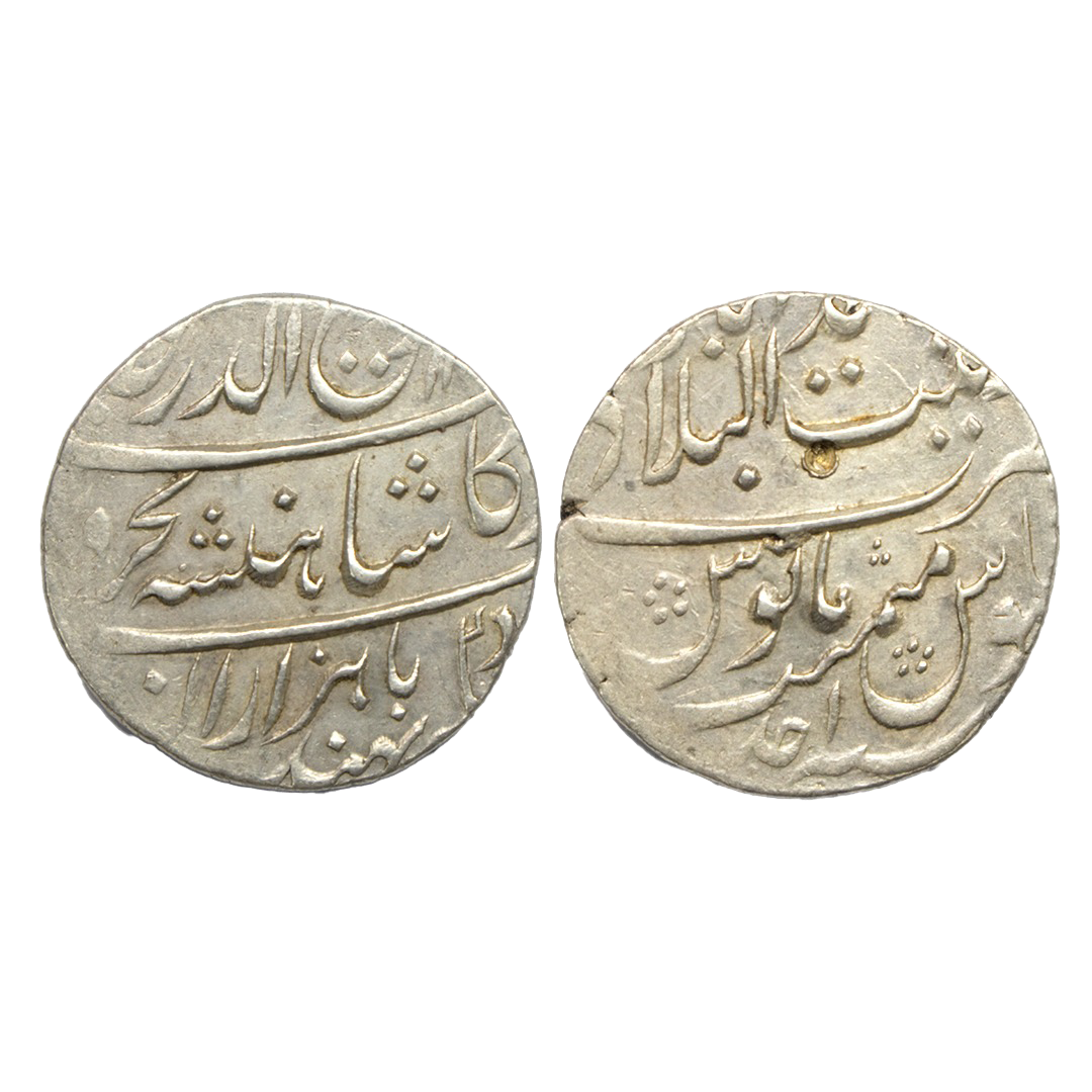Mughals, Farrukhsiyar (AH 1124-1131 / 1713-1719 AD), Silver 1/4 Rupee, 2.85Grms, Surat Mint, date off flan (KM # 374.2). About Extremely Fine, Scarce.