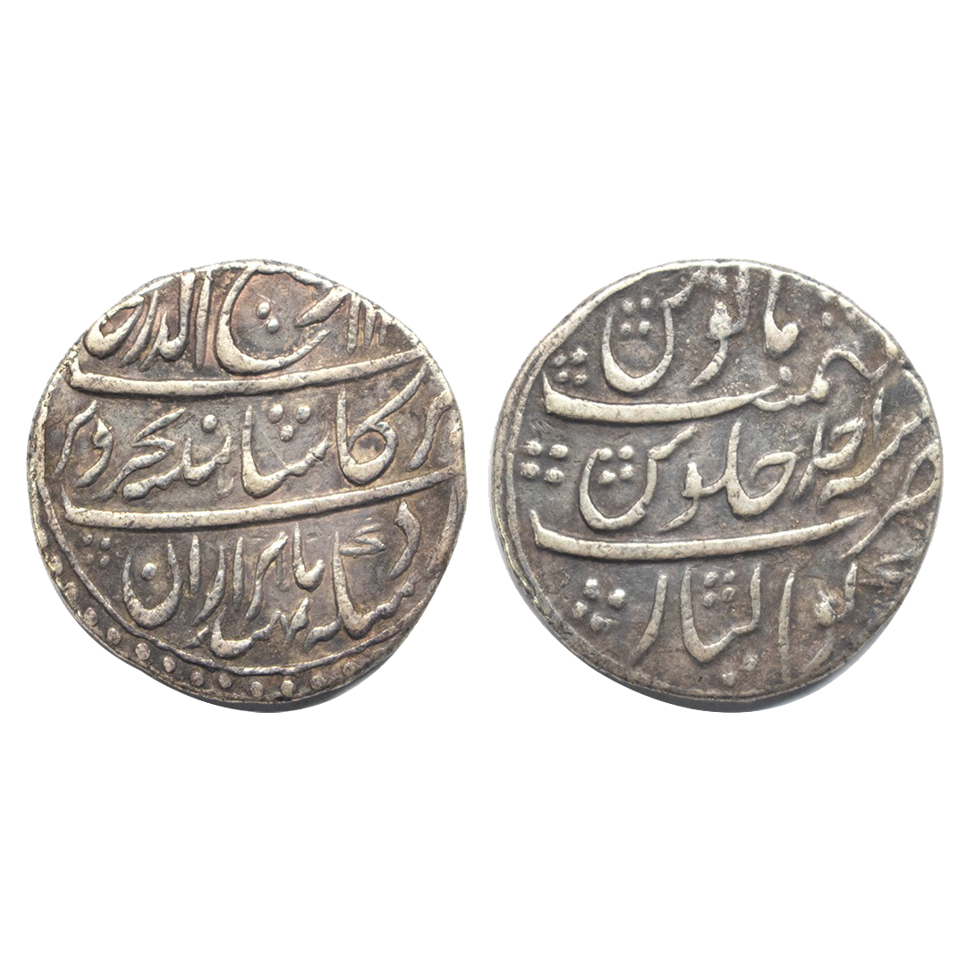 Rafi-ud-Darjat (AH 1131/1719 AD), Gwaliar Mint, Silver Rupee, AH 1131/Ahad RY, Ba hazaran barkat Couplet, Obv: Persian legend sikka-e-zad bahind, bahazaran barkaat shahenshah-e-bahr-o-barr Rafi ud Darjat with Hijri year 1131, Rev: Persian legends sana ahad julus & zarb Gwaliar completely visible at the bottom, (KM # 405.7), superb quality, graded & slabbed by NGC as Mint State 64, Extremely Rare in this grade.