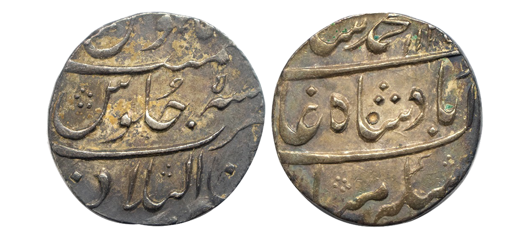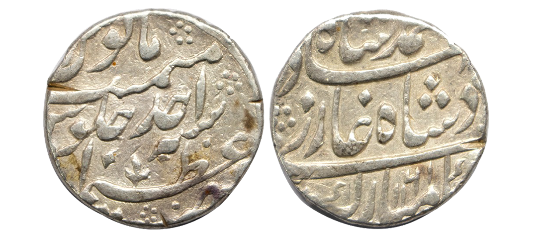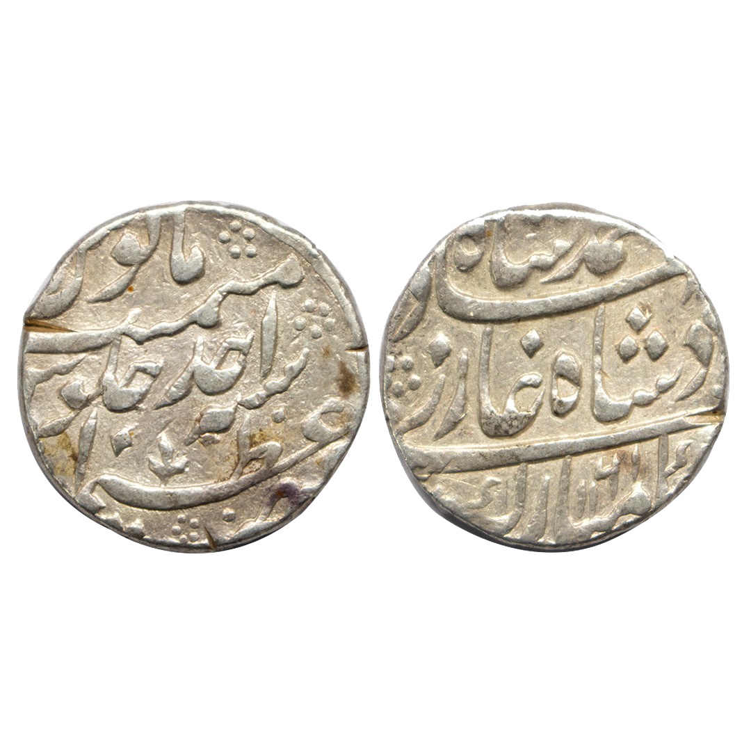 Mughals, Muhammad Shah (AH 1132-1161 / 1719-1748 AD), Silver 1/2 Rupee, 5.63Grms, Surat Mint (off flan), date unseen. (KM # 433.4). Very Fine+.