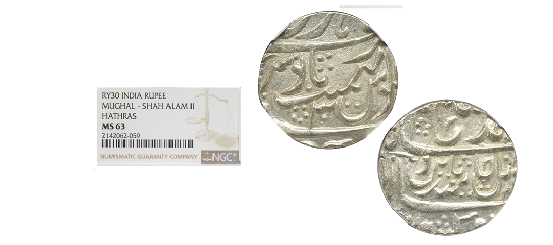 Mughals, Ahmad Shah Bahadur (AH 1161-1167 / 1748-1754 AD), Silver Rupee, 11.47Grms, Murshidabad Mint, RY 5. (KM # 446.15). Very Fine, Very Scarce.