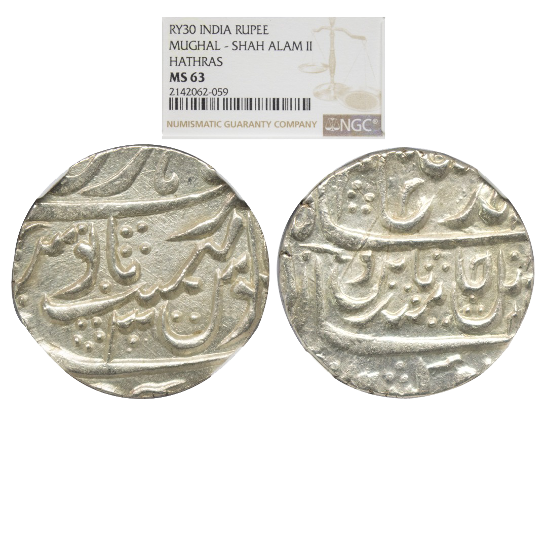 Mughals, Ahmad Shah Bahadur (AH 1161-1167 / 1748-1754 AD), Silver Rupee, 11.47Grms, Murshidabad Mint, RY 5. (KM # 446.15). Very Fine, Very Scarce.