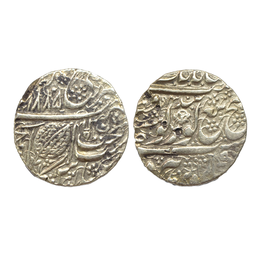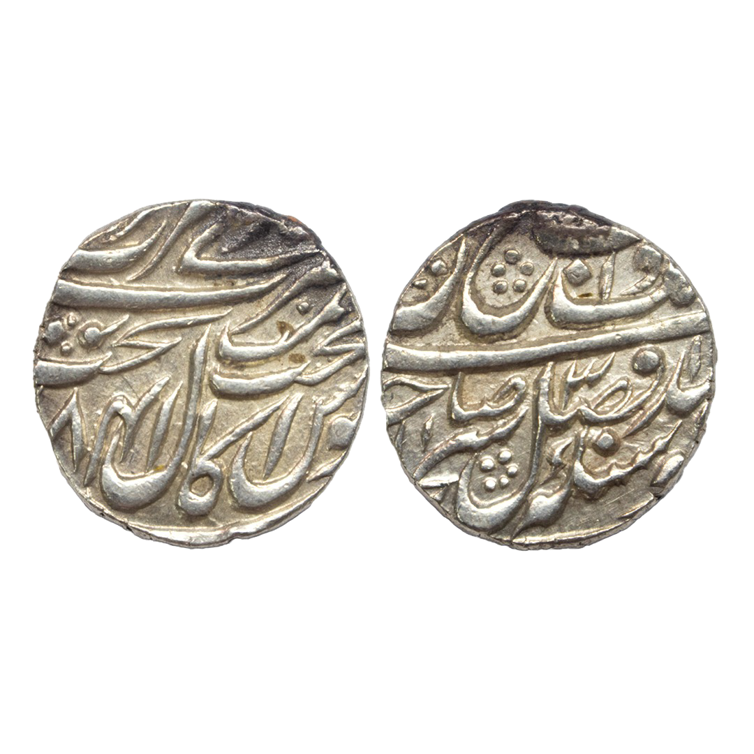 Sikh Empire, silver rupee, Amritsar mint, Nanak Shahi couplet, VS 1882, persian Noon symbol below the bind of Gobind on obverse, nice dotted arragement, G. Singh 01.39.01, 11.08g. Ms62 by ngc Very scarce.