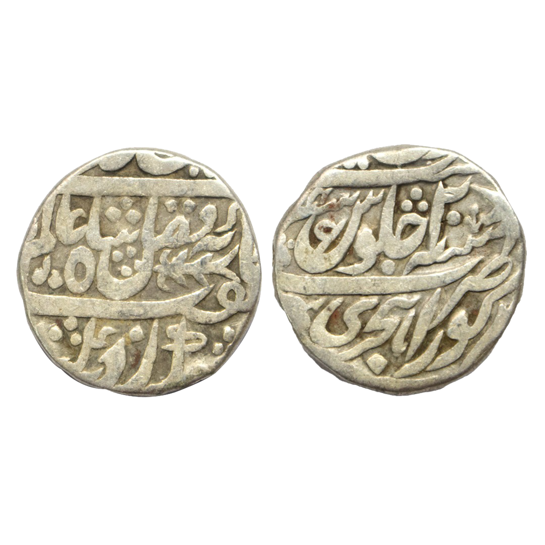 Independent Kingdom, Tripura, Rajadhara Manikya with Queen Satyavati Mahadevi (SE 1508-1531 / 1586-1599 AD), Silver Tanka, 10.70Grms, SE 1508, OBV: lion to left with a standard above, flag tied to shaft, with date Saka 1508 below, within circle, outer border of circles with central pellet & samall pellet added to left of standard, REV: Sri Sri Yuta Raja/dhara Manikya/Deva Sri Satyava/ti Maha Devyau in four lines within square. (R&B # 185 type). Extremely Fine, Big flan, Rare.