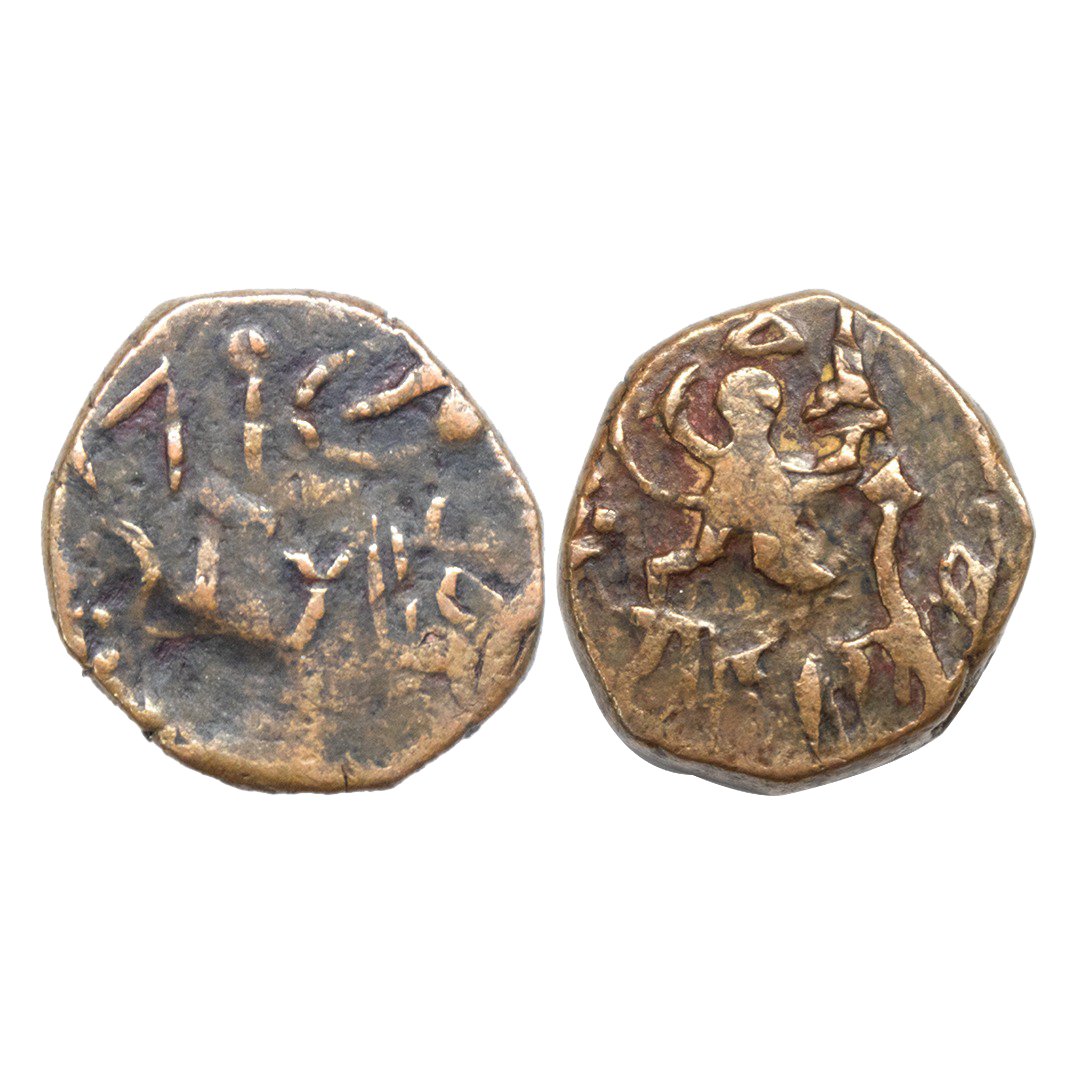 Princely States, Garhwal, Lallat Shah, (VS 1829-1838/1772-1781 AD), Silver Timasha, 2.36 grms, Srinagar Mint, in the name of Shah Alam II, mint name on rev top area, flower symbol on rev left field. (KM # C20).