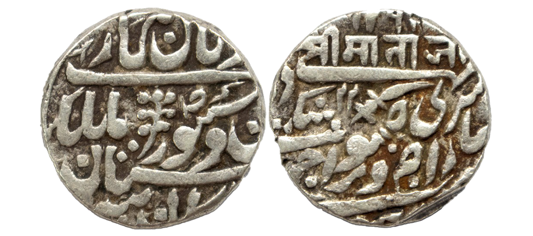 Princely States, Jhalawar, Silver Nazarana Rupee, 11.28Grms, Jhalawar Mint, in the name of Bahadur Shah II, AH 1256, RY 3, Jhar symbol on rev as a mint mark. (KM # C29).