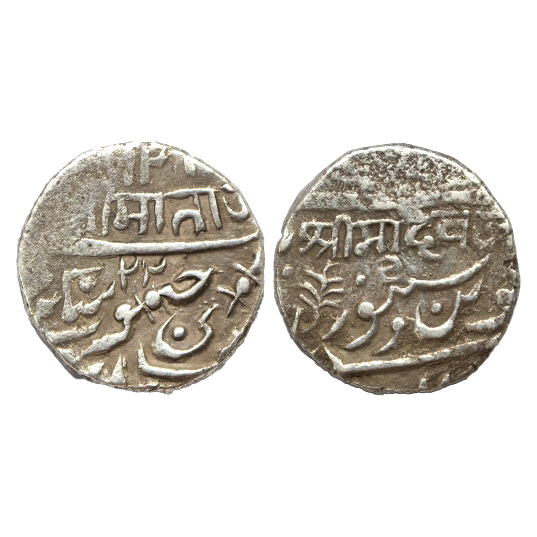 Princely States, Jhalawar, Silver Nazarana Rupee, 11.28Grms, Jhalawar Mint, in the name of Bahadur Shah II, AH 1256, RY 3, Jhar symbol on rev as a mint mark. (KM # C29).