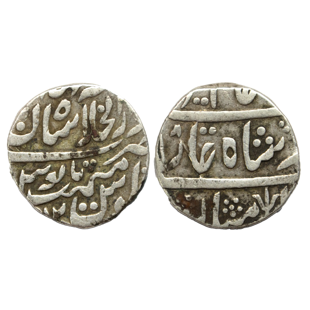 Princely States, Mewar Feudatory, Shahpura, Silver Rupee, 11.00Grms, Dar-ul-Khilafat Shahjahanabad Mint, in the name of Shah Alam II, Trident mint mark on obv bottom area. (KM # C22). Very Fine+, Scarce.
