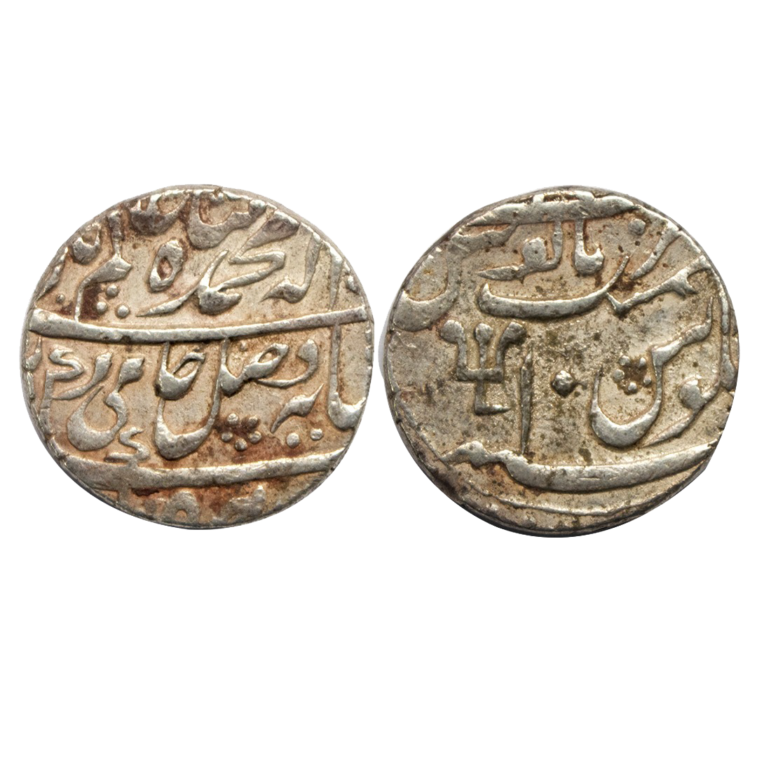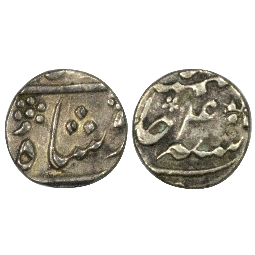Bengal Presidency, Jahangirnagar (Dacca) Mint, Silver Rupee, 11.64grms, in the name of Shah Alam II, AH1176, RY 4, sun symbol as a mint mark on rev, RY unlisted in Stevens. (P. Stevens # 5.39 type).