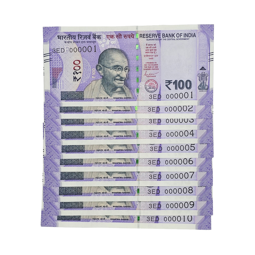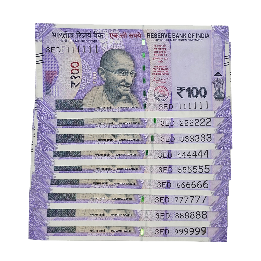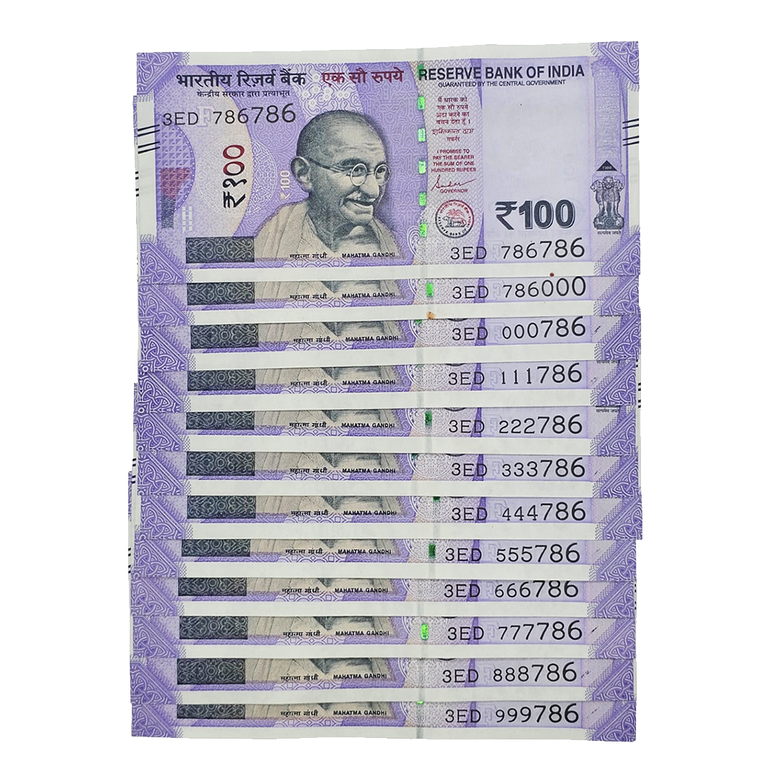 Paper Money, Republic India, 100 Rupees, Set of 40 Notes, Fancy Number, 100000 to 1000000, 00001 to 000010, 111111 to 999999, 786786, 786000, 000786, 111786, 222786, 333786, 444786, 555786, 666786, 777786, 888786, 999786, 000687, 123456, 654321, 000108, 000143, 000541, 000420, 000214, 000916, All Notes Same Prefix, Signed By Shaktinath Das.