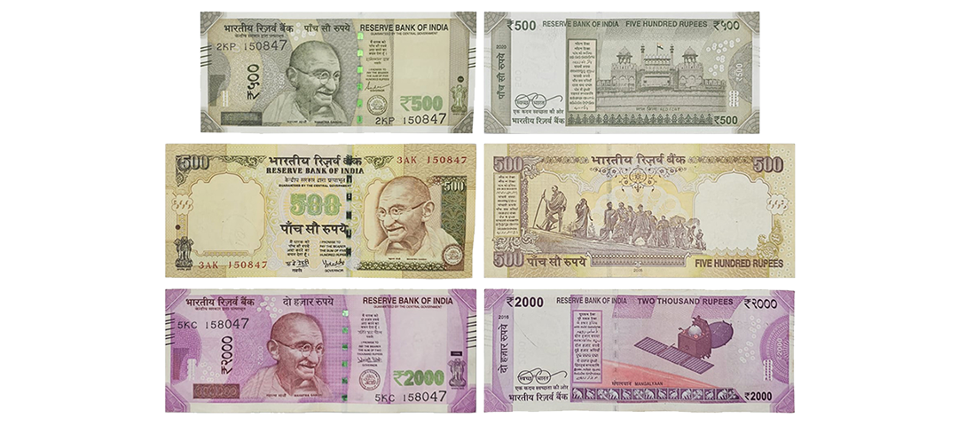 Paper Money, Republic India, Set of 11 notes, with Number "150847" marking the day of our Independence 15th August 1947, Denominations- 10(2),20(3),50,100,200,500(2),2000. AU to UNC.