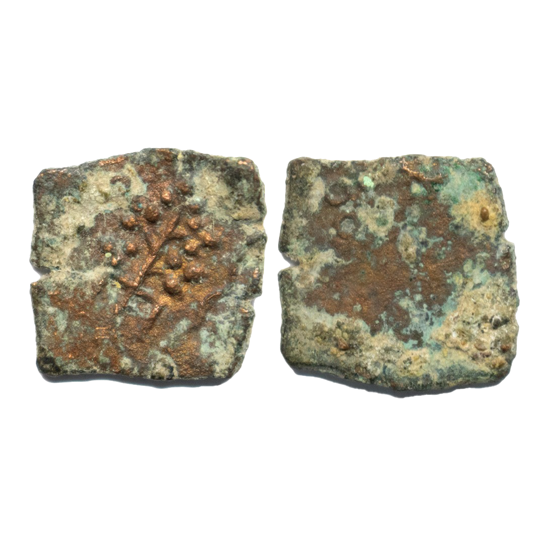 Post-Mauryan, Taxila Region, Punch Mark type, Copper Unit, 11.67Grms, OBV: Lion waling to left above svastika and front of three arched hill with crescent symbol, REV: Elephant walking to right above three arched hill with crescent symbol. (Pieper # 1494). Very Fine+.