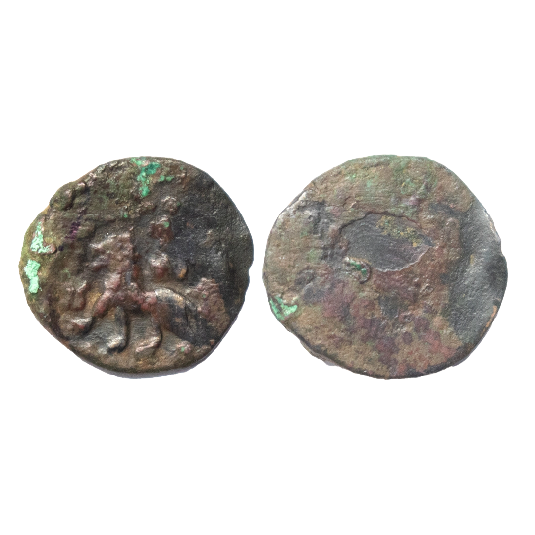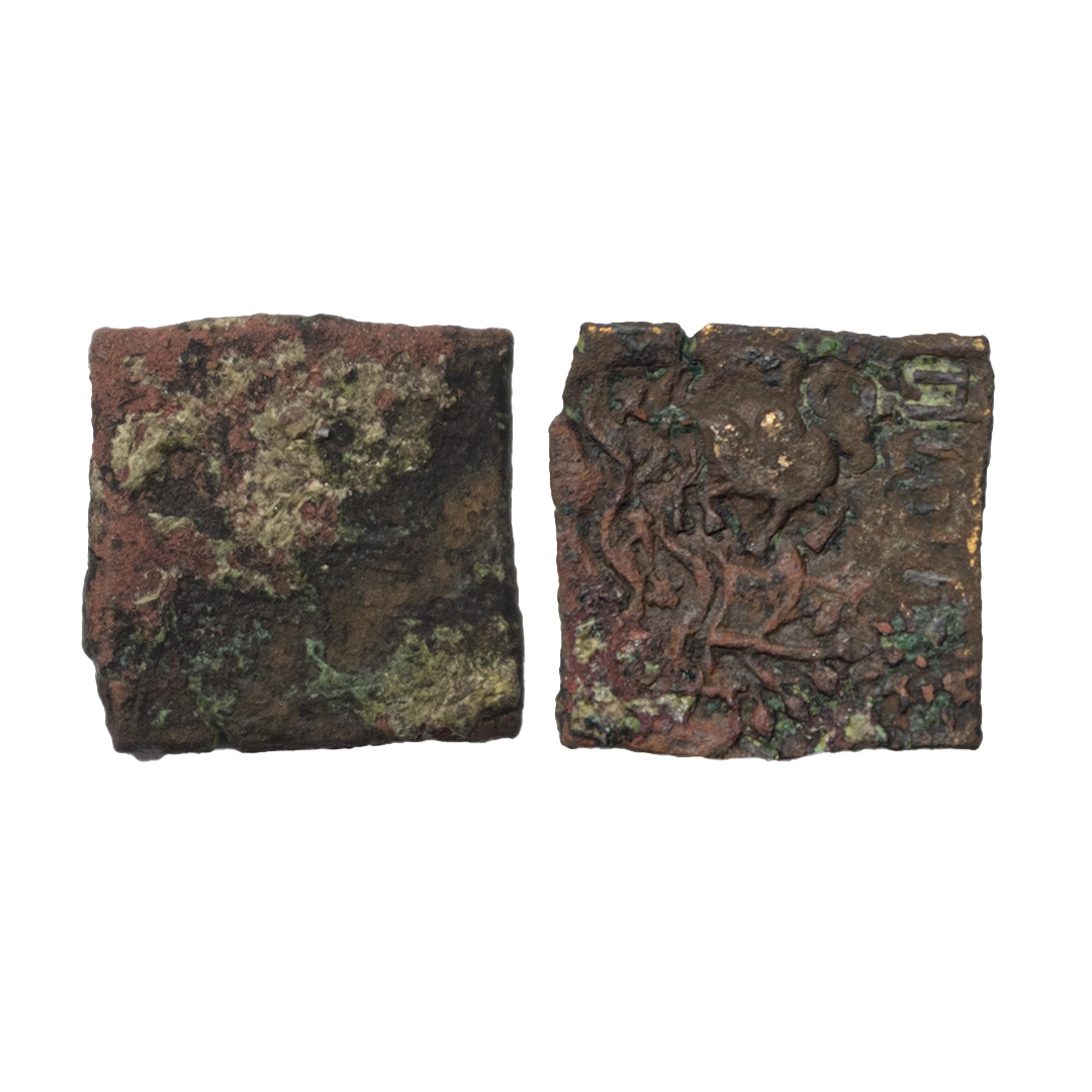 Archaic Coinage Punch Marked from Bihar, attributed to Anga Janapada (c. 300-200 BC), Copper Karshapana, 6.39Grms, OBV: Traces of symbol including sun and three arched hill, Uniface. (Mitch # ACW 4608). Fine