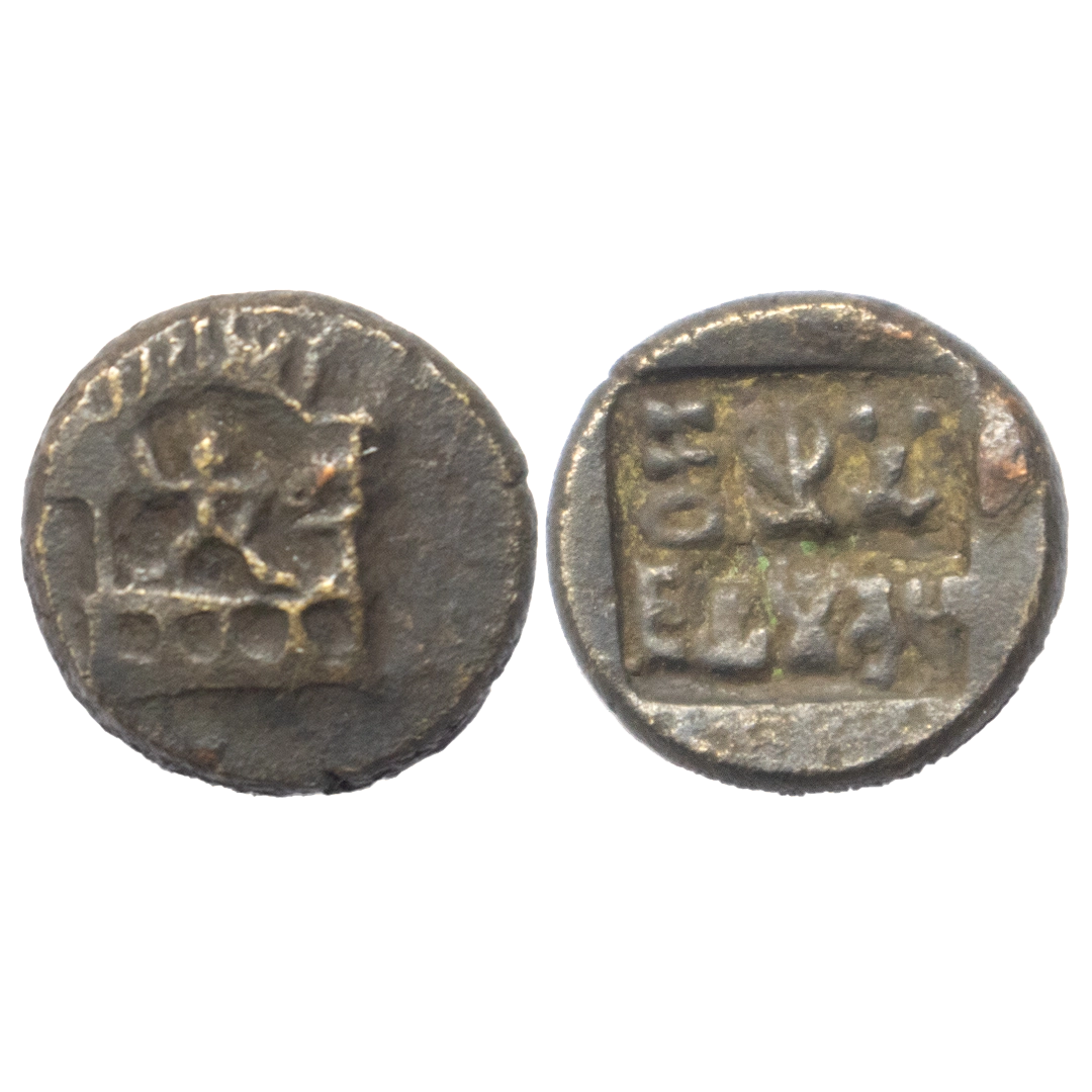 Western Kshtrapas, Kardamaka Family, Vijayasena (238-239 AD), Silver Dramma, 2.96Grms, OBV: Bust of king to right, Corrupt Greek legend around, REV: Three arched hill with crescent on top, flanked by sun and moon, wavy line below, Brahmi legend around ‘Rajno Mahakshtrapasa Damasenaputrasa Rajno Mahakshtrapasa Vijayasenasa’. ( Fishman # 23). Very Fine.