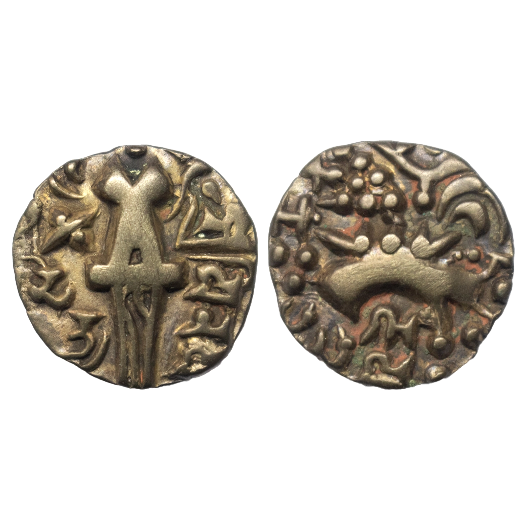 Aulikaras of Malwa, Mandsaur region, Central India, Lead Unit, 9.53Grms, Uninscribed type, OBV: Stylised conch within dotted circular border, REV: Lotus symbol. (Pieper # 3730). Fine+.