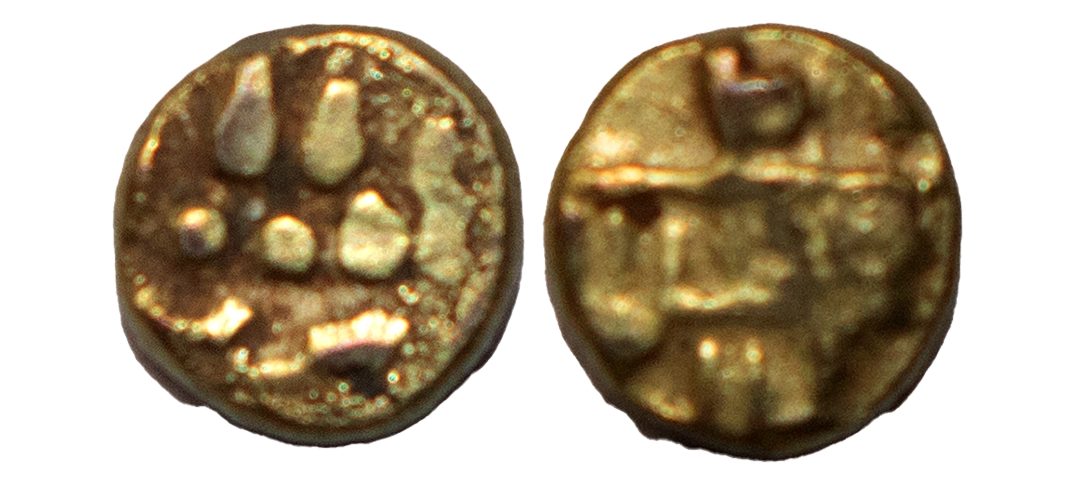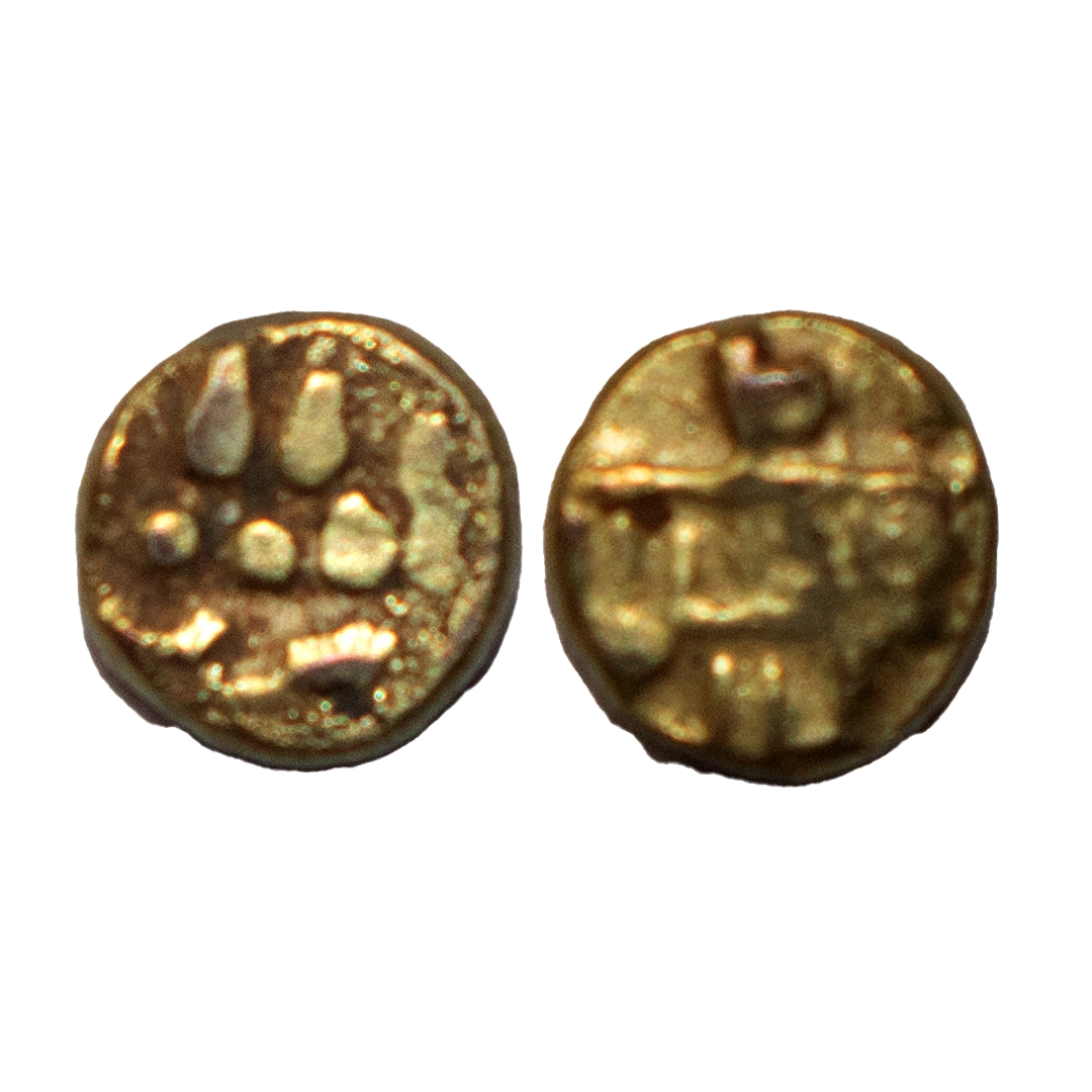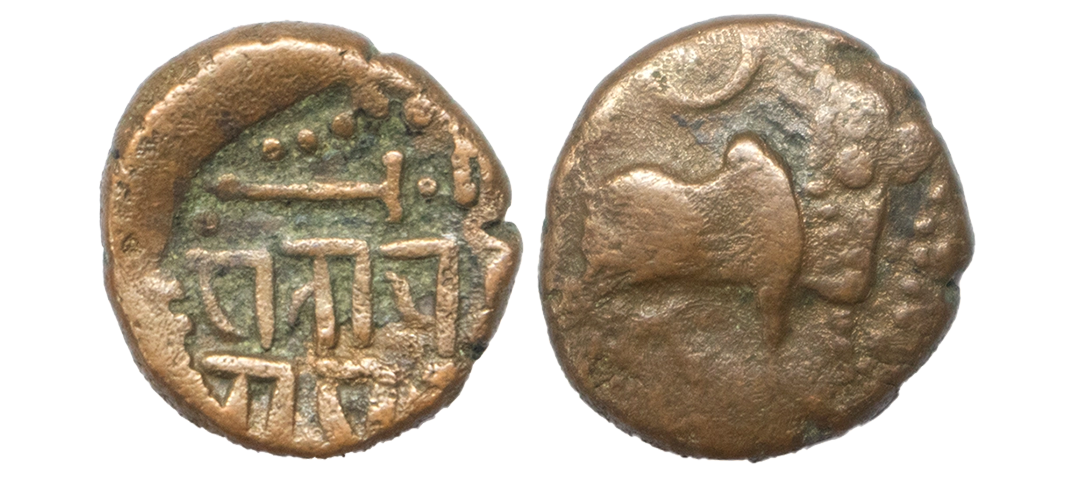 Medieval India, Chowhans of Ranthambhor, Jaitra Simha (c. 1275 AD), Silver Dramma, 2.65Grms, OBV: Lion facing left with upraised paw within dotted circular border, REV: Nagari legend in three line 'Jaitasi Deva' within dotted circular border. (Deyell # 366). Very Fine+.