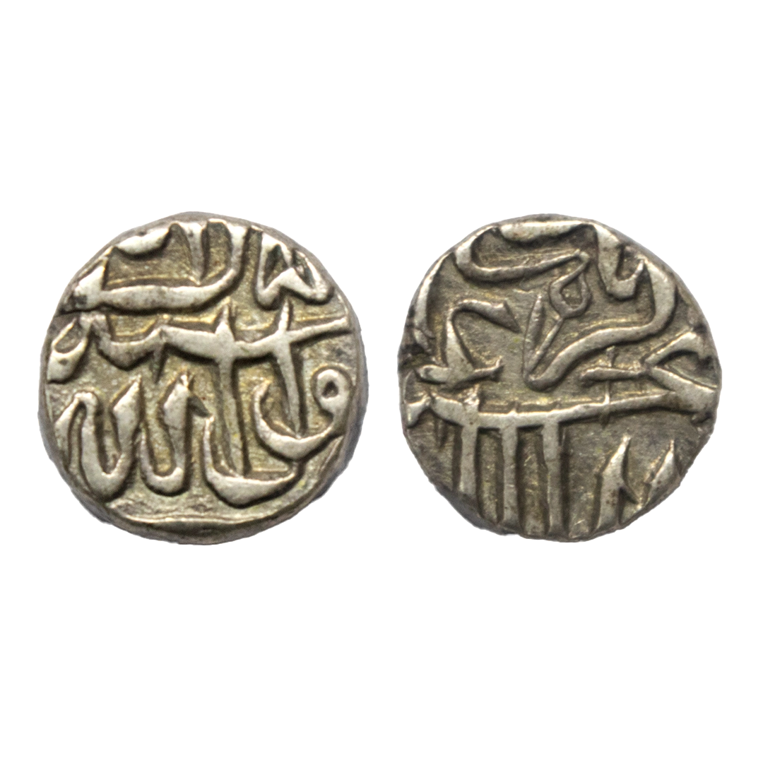 Mughal, Akbar (AH 963-1014, 1556-1605 AD), Silver Countermark Shahrukhi, 4.59 gms, Countermark "Adl-e-akbar”, countermarked on Shahrukhi of Iskandar Bahadur Khan of Shayabanids Dynasty mint Balkh, Adl-e-akbar Sharukhis are much rarer than adl-e-Kabul types, very fine with a prominent countermark, very rare.