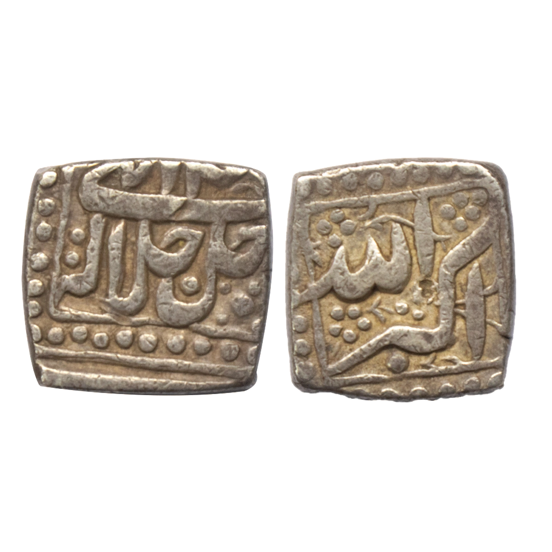 Mughals, Akbar (AH 963-1014 / 1556-1605 AD), Silver Tanka, 6.93Grms, Mandu-Ujjain, Provincial issues, Malwa types, OBV: Kalima, REV: Ruler name with title. (KM # 75).