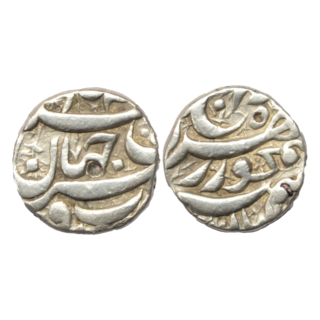 Mughal, Akbar (AH 963-1014, 1556-1605 AD), Silver ½ Rupee, 5.30 gms, Ahmedabad Mint, Ilahi month Mihir, RY 4x, KM # 66.1, very fine, very rare.