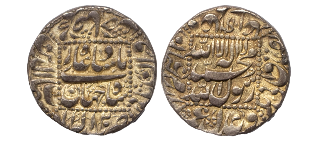 Mughal, Shah Jahan (AH 1037-1068, 1628-1658 AD), Gold Mohur, 10.78 gms, Akbarabad Mint, AH 1047, RY 11, Obv: The Kalima Shahada in quarterfoil & four khalifas name in margin, Rev: Shahjahan Badshah Ghazi, hijri date 1047 & regnal year 11 in quarterfoil, Shihab ud-din Muhammad saheb-e-qiran sani & mint name Akbarabad in margin, KM # 258.1, Almost Complete Die Striking Visible. Extremely fine+, rare.