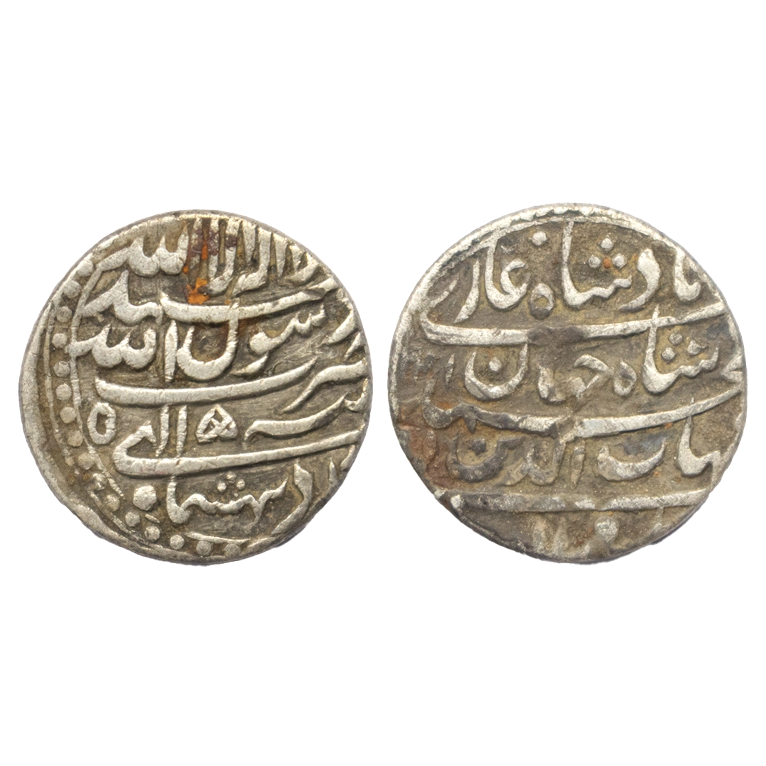 Mughal, Shah Jahan (AH 1037-1068, 1628-1658 AD), Silver Rupee, 11.46 gms, Junagadh Mint, AH 1050, RY 14, KM # 235.12, very fine, very scarce. Complete Mint, Complete Die Impressions On Both Sides.