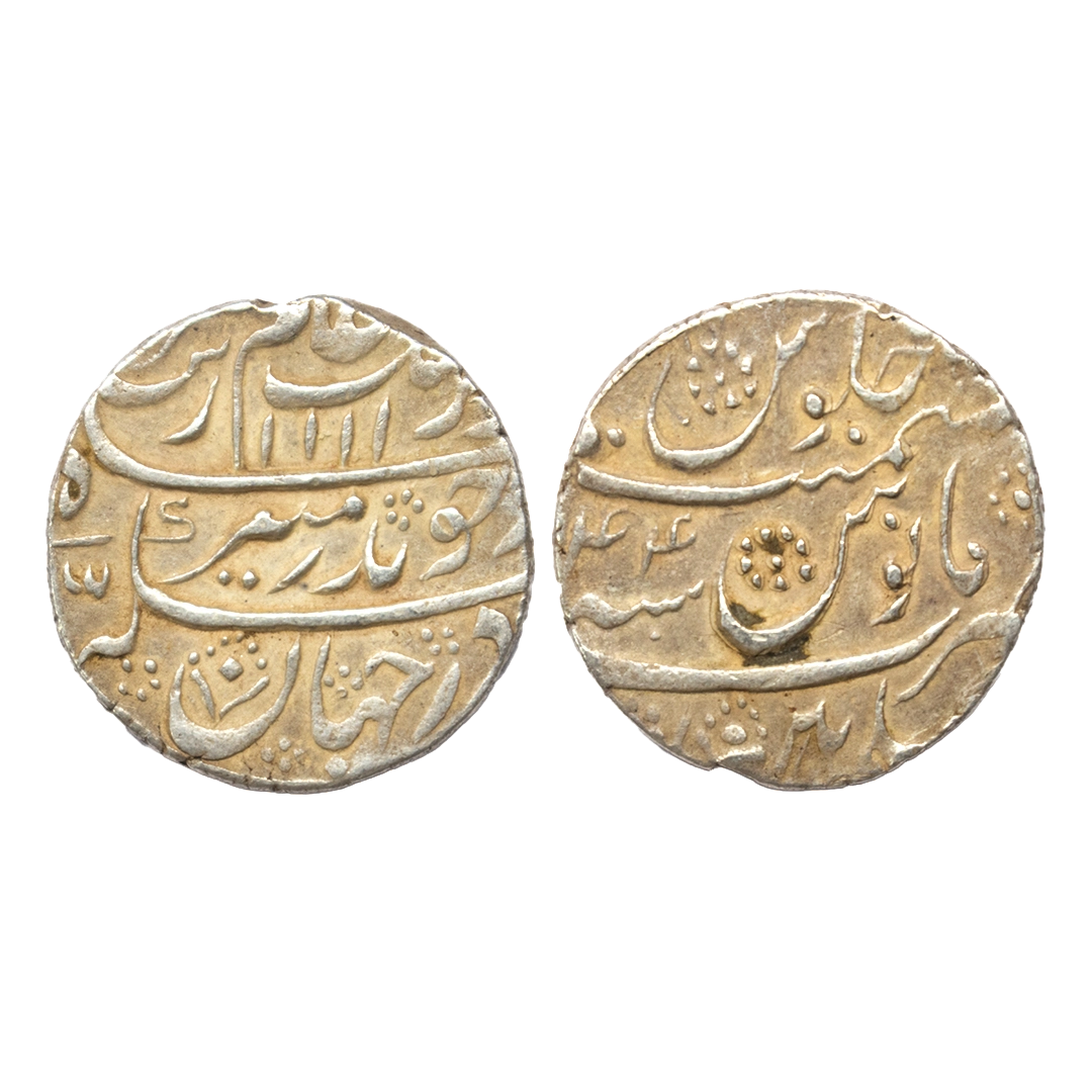 Mughal, Aurangzeb (AH 1068-1118, 1658-1707 AD), Silver Rupee, 11.59 gms, 24.75 mm, Khambayat Mint on top, AH 1107, KM # 300.95, very fine, very rare.