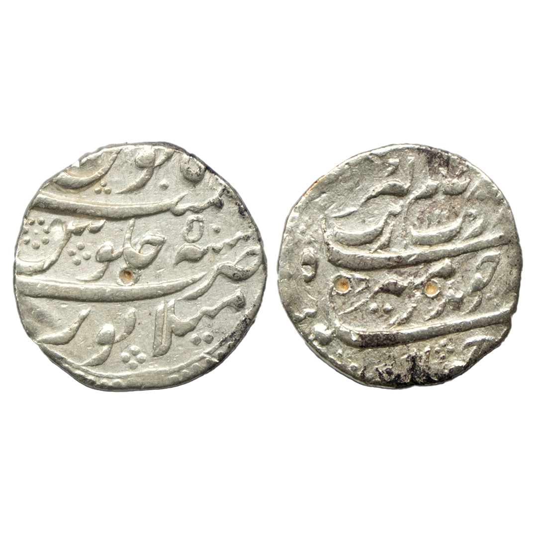 Mughal, Aurangzeb (AH 1068-1118, 1658-1707 AD), Silver Rupee, 11.59 gms, 24.75 mm, Khambayat Mint on top, AH 1107, KM # 300.95, very fine, very rare.
