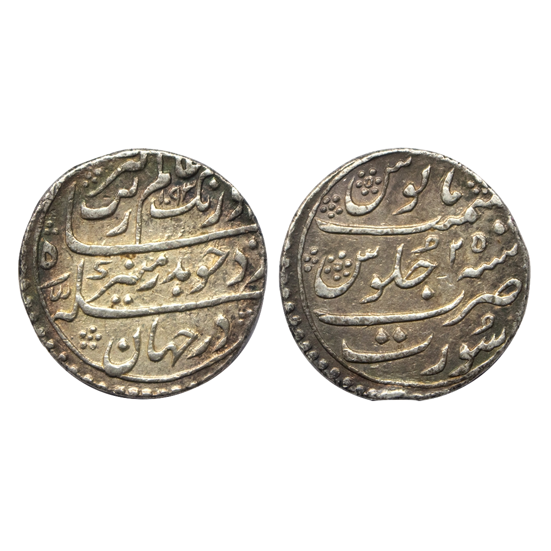 Mughal, Aurangzeb (AH 1068-1118, 1658-1707 AD), Silver Rupee, 11.48 gms, Surat Mint, AH 1093, RY 25, KM # 300.86, very fine, very scarce. Big Flan with Dotted Border on Both Sides.