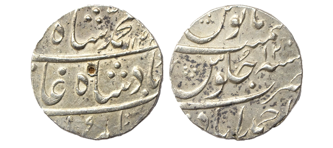 . Mughal, Muhammad Shah (AH 1131-1161, 1719-1748 AD), Silver Rupee, 11.53 gms, Ahmadabad Mint , AH 114x, RY 12, KM # 436.1, very fine+, scarce.