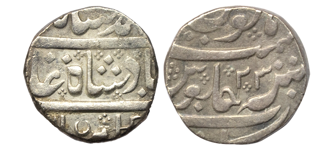 Mughal, Muhammad Shah (AH 1131-1161, 1719–1748 AD), Silver Rupee, 11.29 gms, Arkat Alamparai Mint (off flan), AH 1148, RY 23, KM # 436.7, very fine+, scarce.